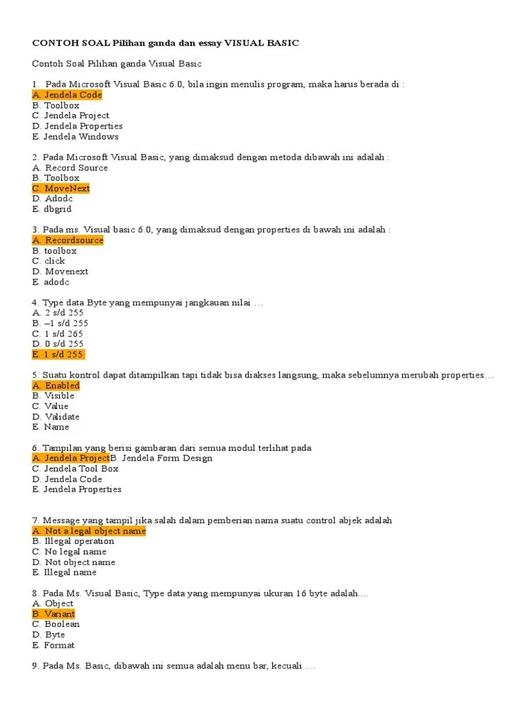 Contoh Soal Pilihan Ganda Visual Basic / 103+ Contoh Soal Tes Tpks Binus Terupdate - Dikdasmen : Hayo siapa yang lagi home.