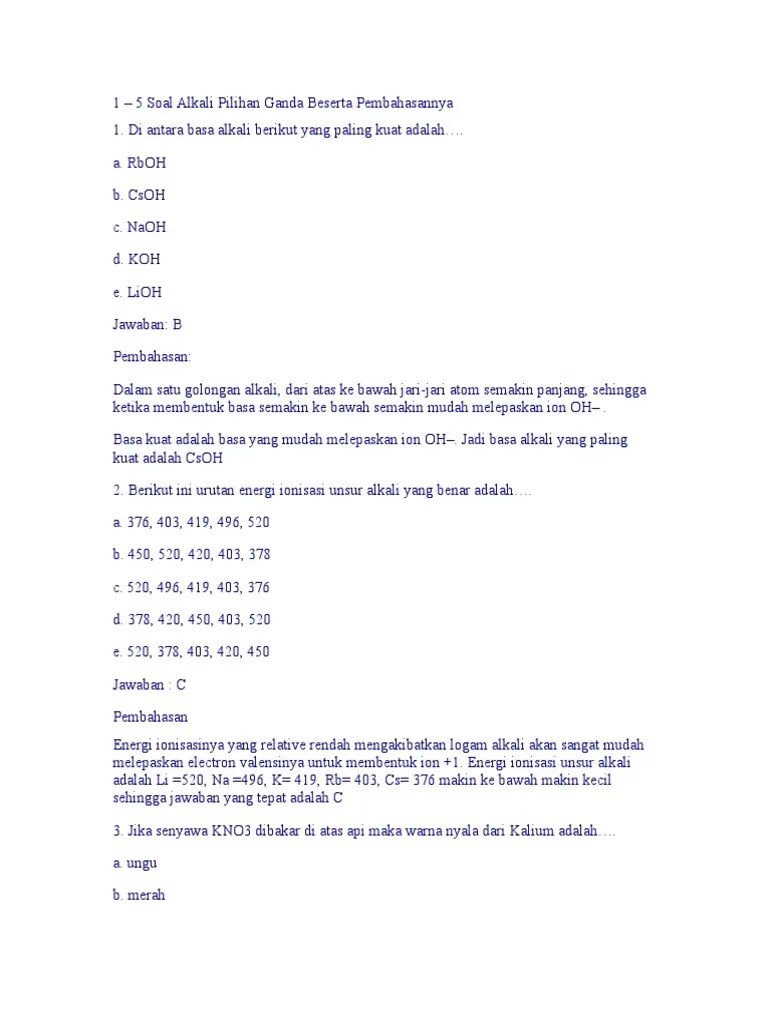 Soal Hots Pilihan Ganda Kimia Unsur Dan Jawabannya - Soal Pilihan Ganda Kimia Unsur : 16.04.2021 · disini akan dibahas beberapa contoh contoh soal pkk kelas 12 beserta kunci jawabannya.